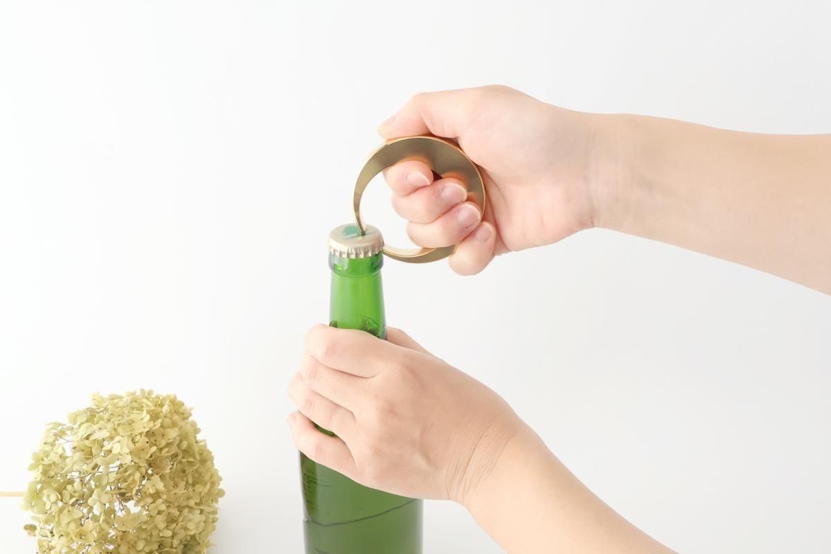 三日月の隙間で栓を挟み込み、上に向かって押し上げて使用します。