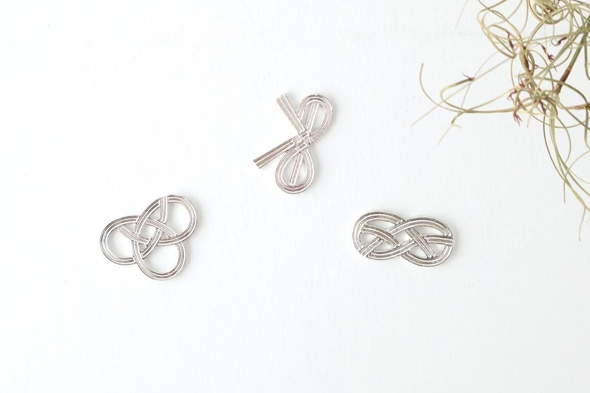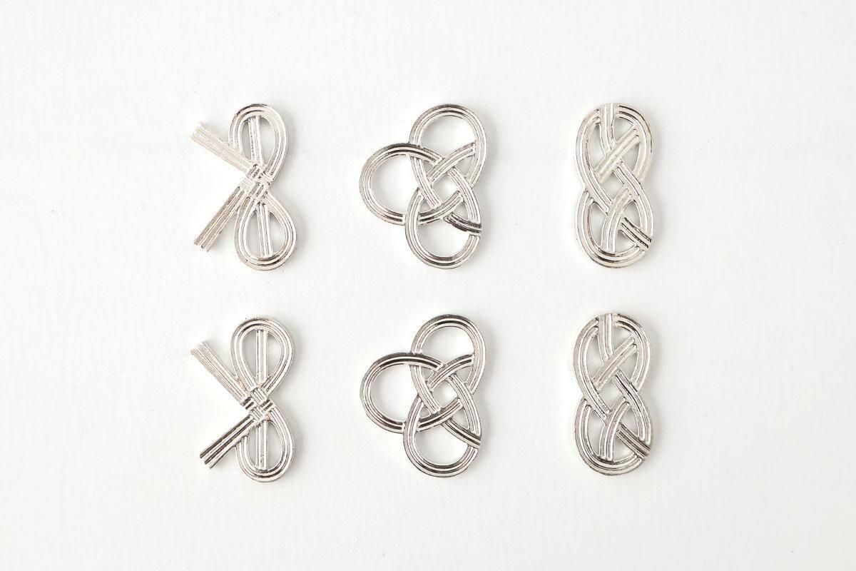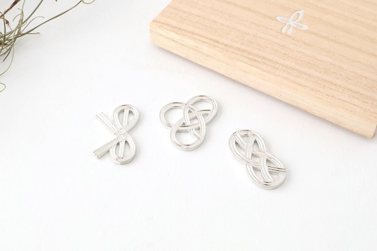 水引の結びをモチーフにした、錫(すず)の箸置きの3セットです。
