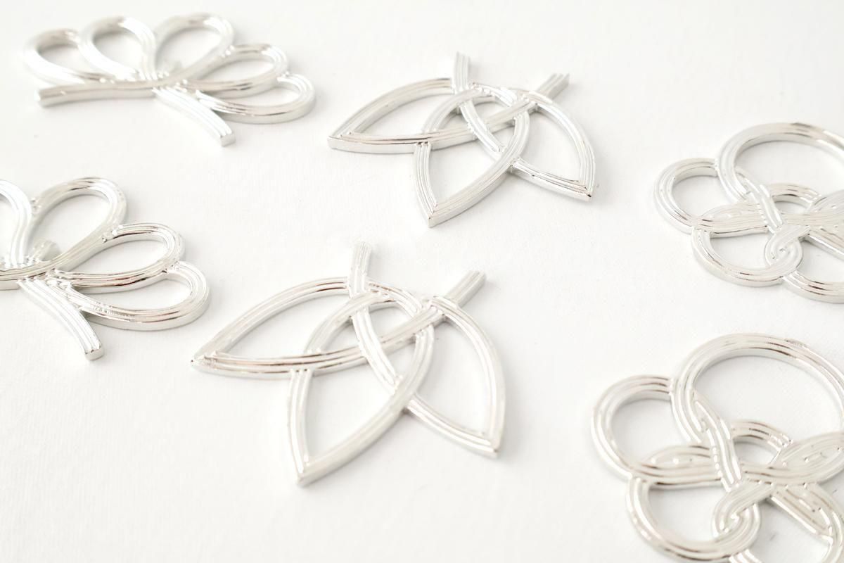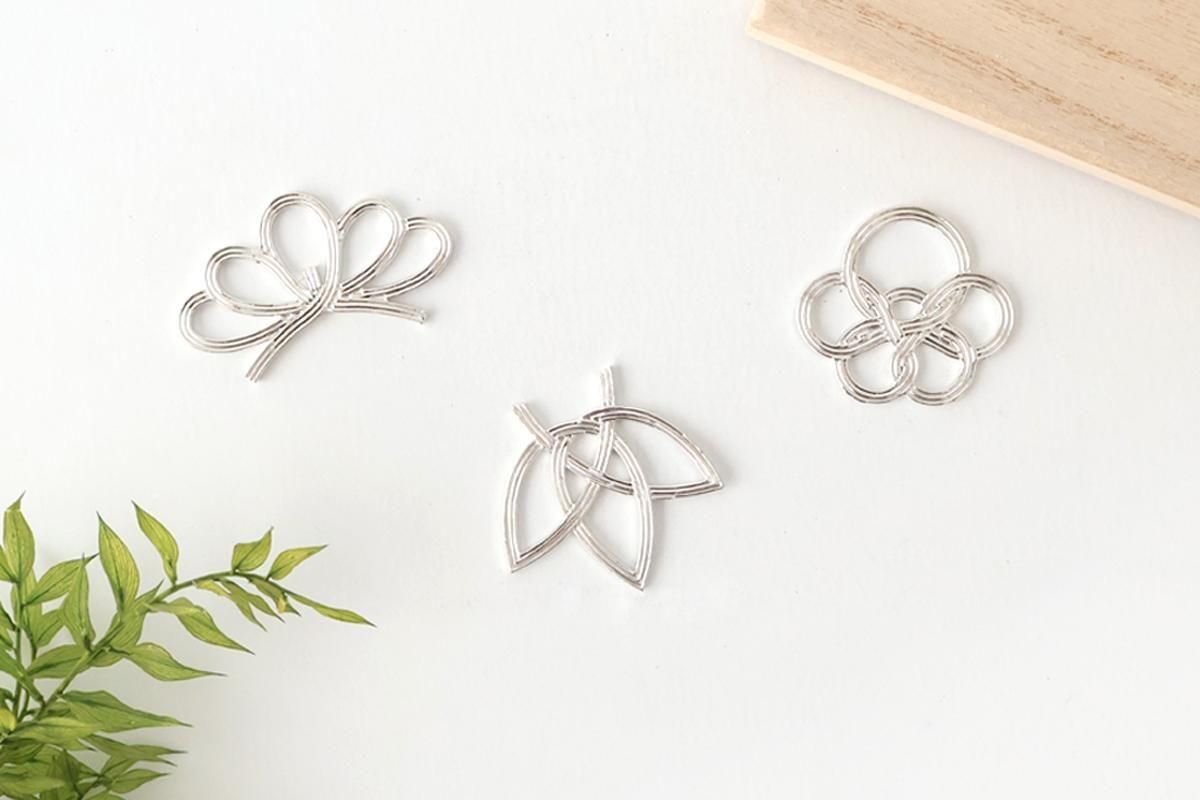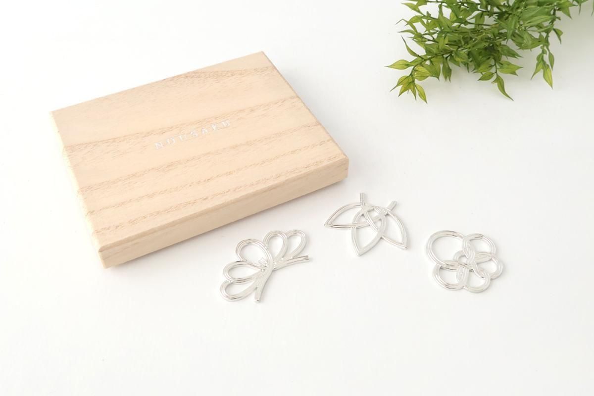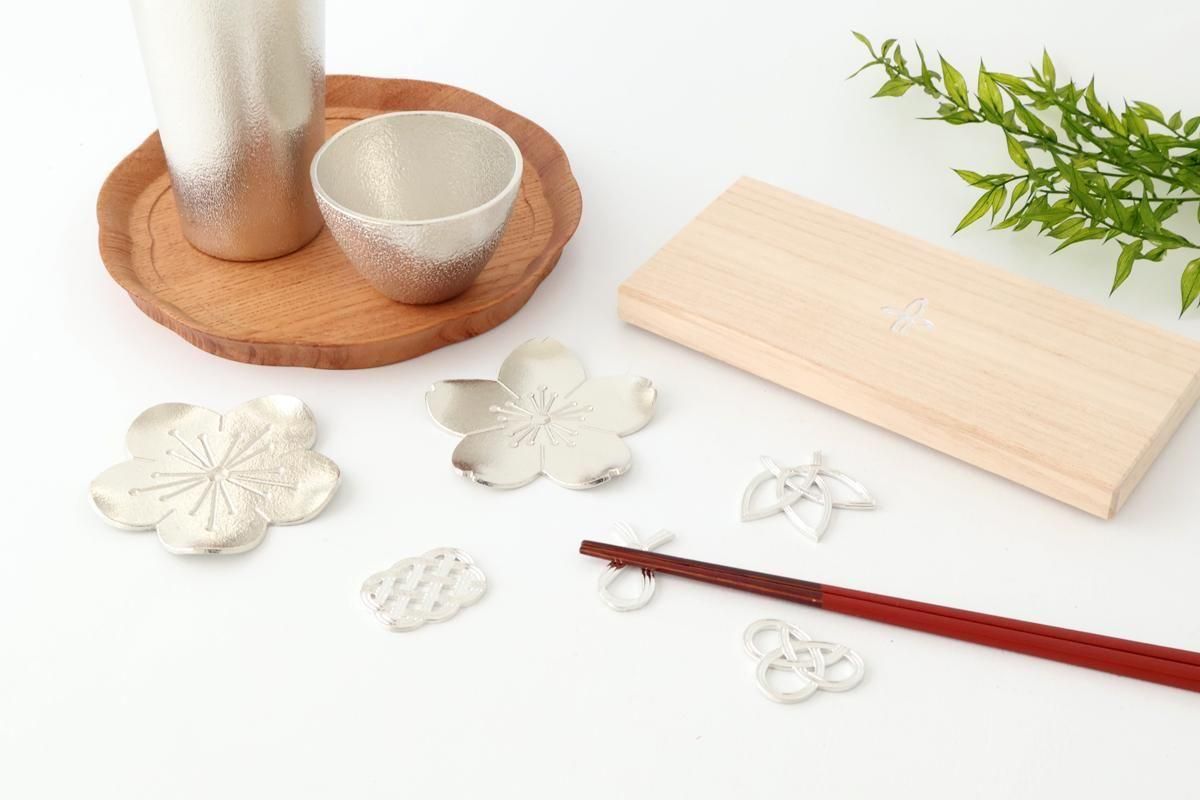 松竹梅の水引をモチーフにした、錫(すず)の箸置きの3セットです。
