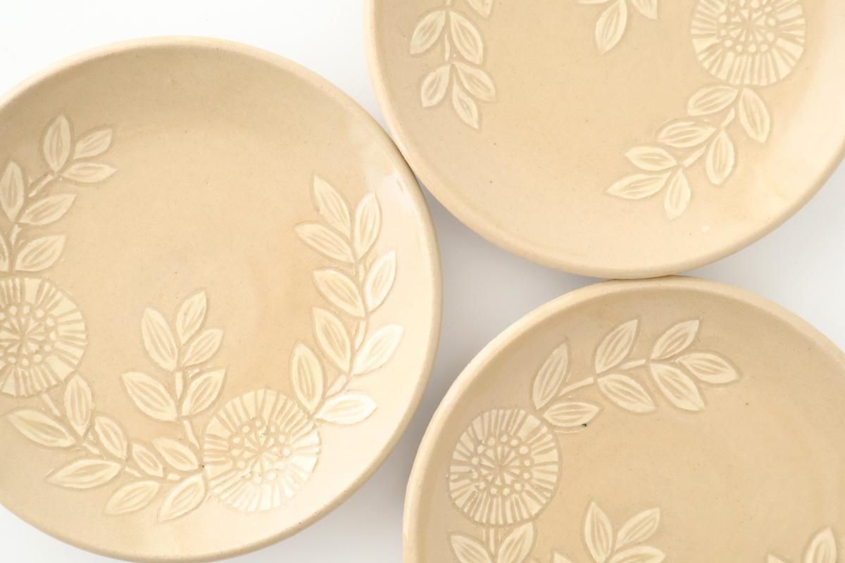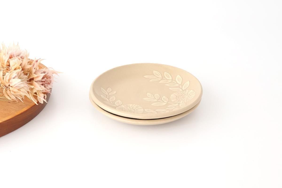 素朴な温かさを感じる、お花柄の5寸皿です。