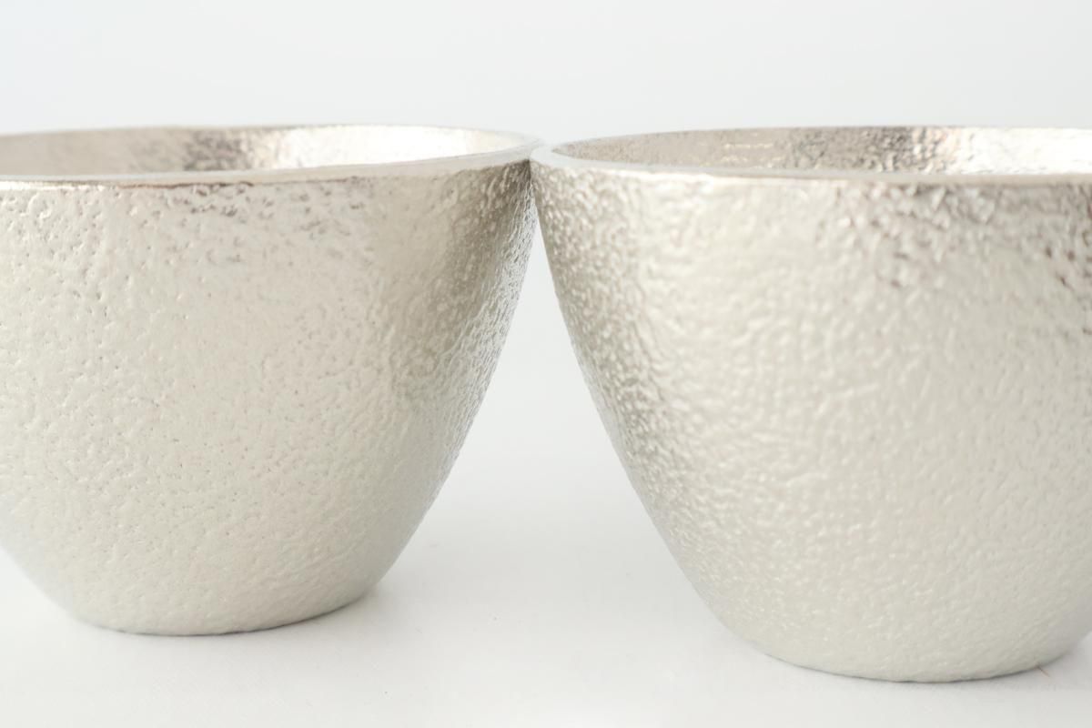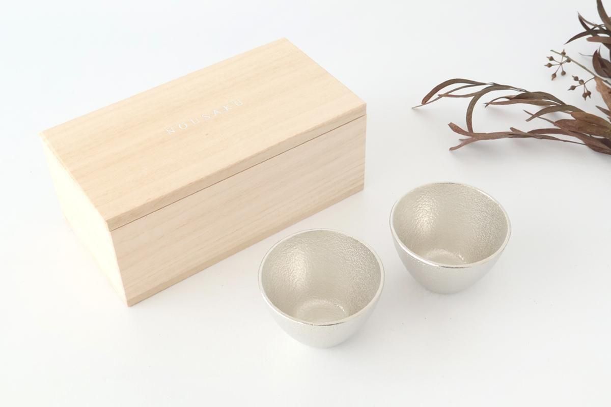 凛とした佇まいの、錫(すず)のぐい呑みのセットです。