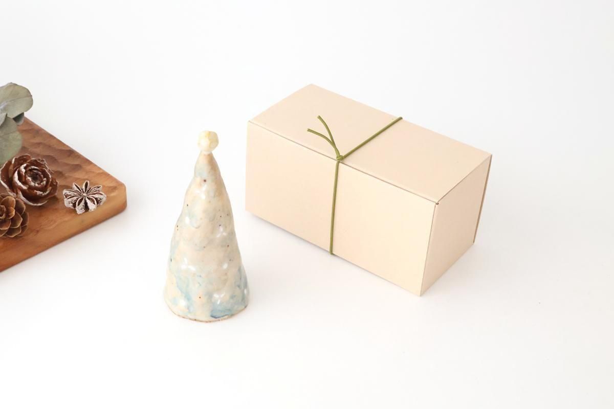 アイボリーに、やわらかい水色で表現されたモミの木。