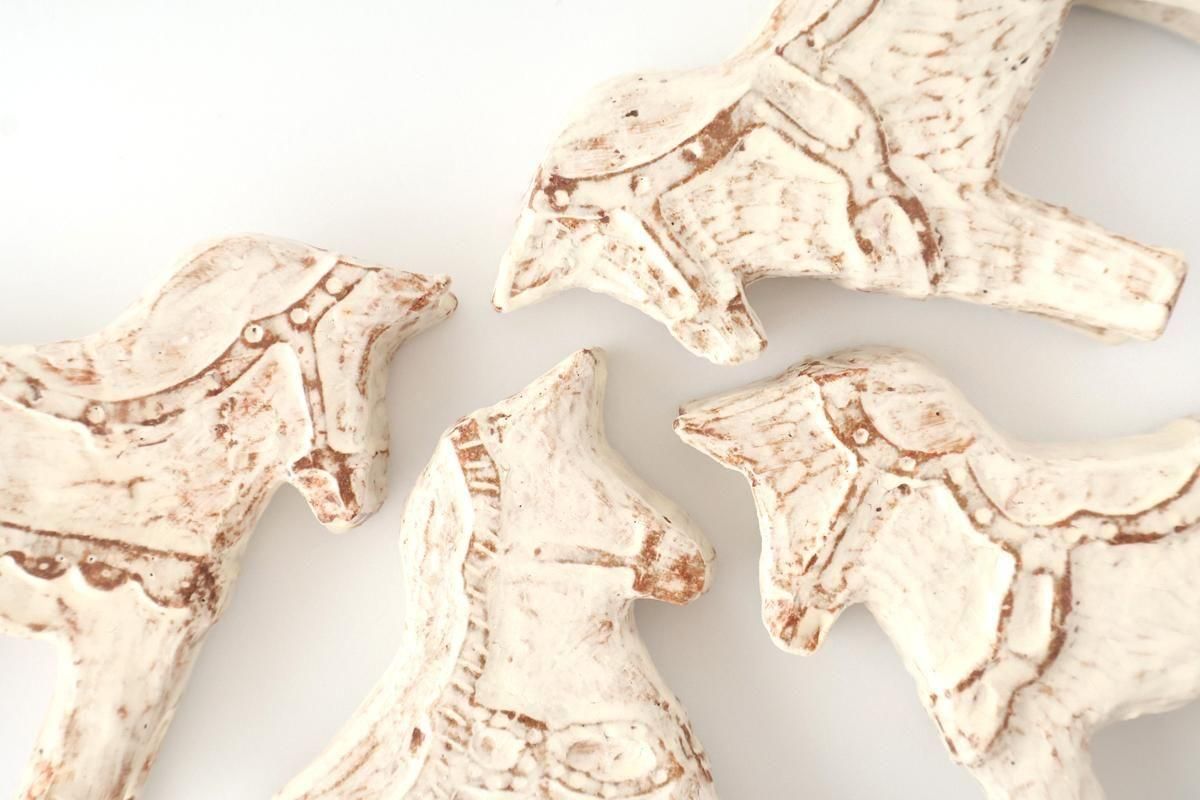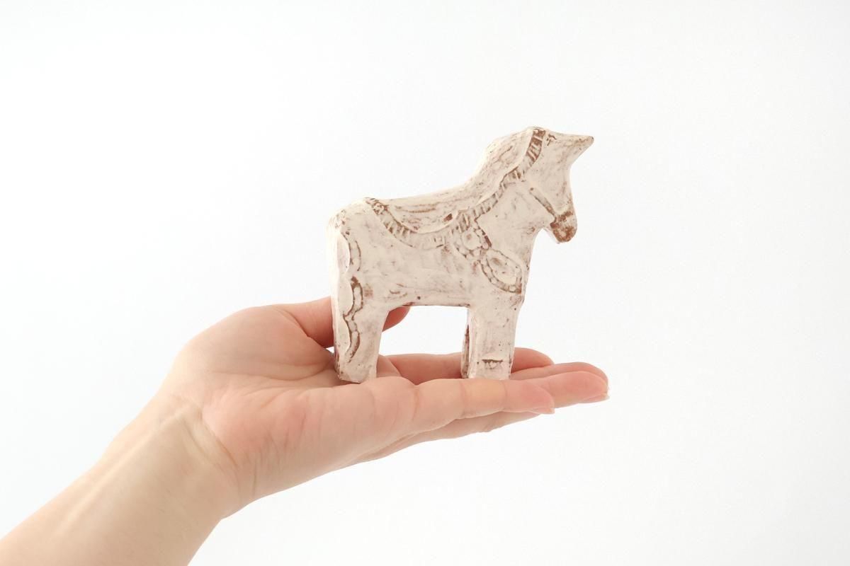 陶器でできた、温かみのあるダーラナホースの置物です。