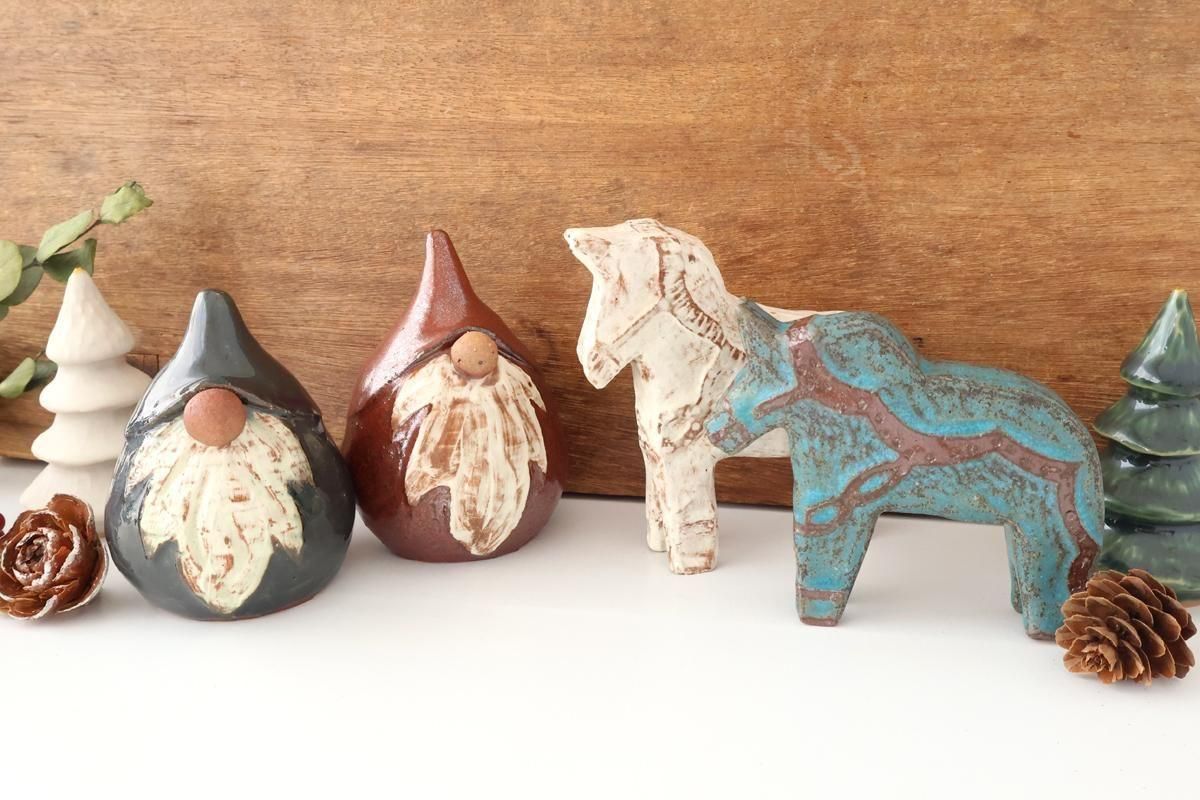 陶器でできた、温かみのあるダーラナホースの置物です。