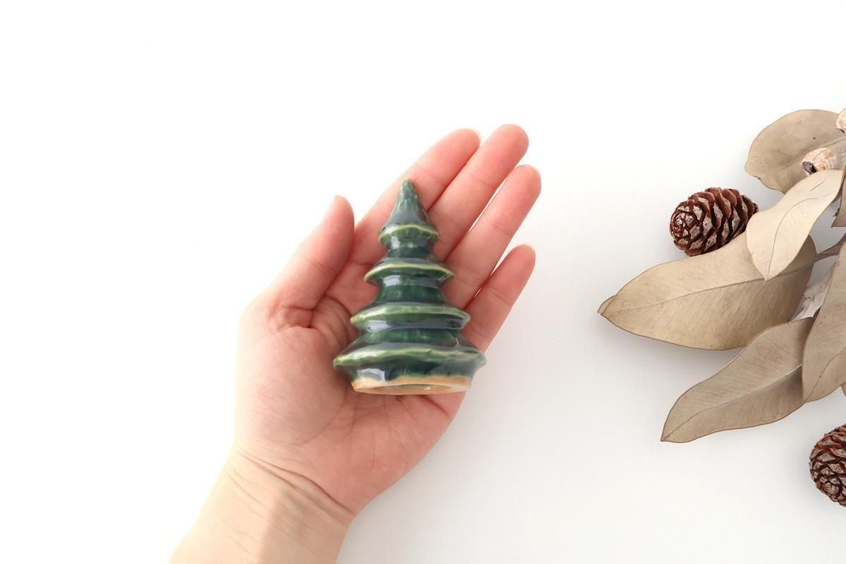 陶器でできた、温かみのある雰囲気のクリスマスツリーです。