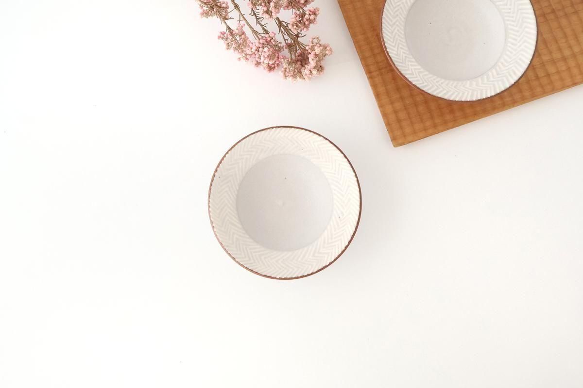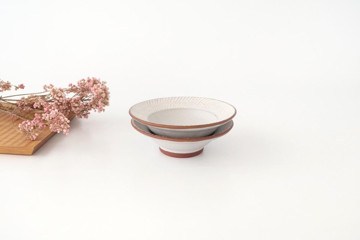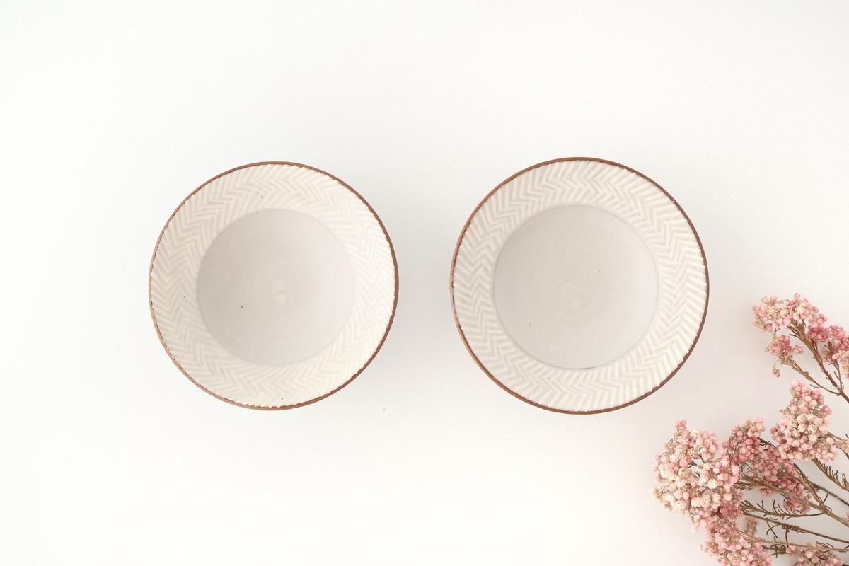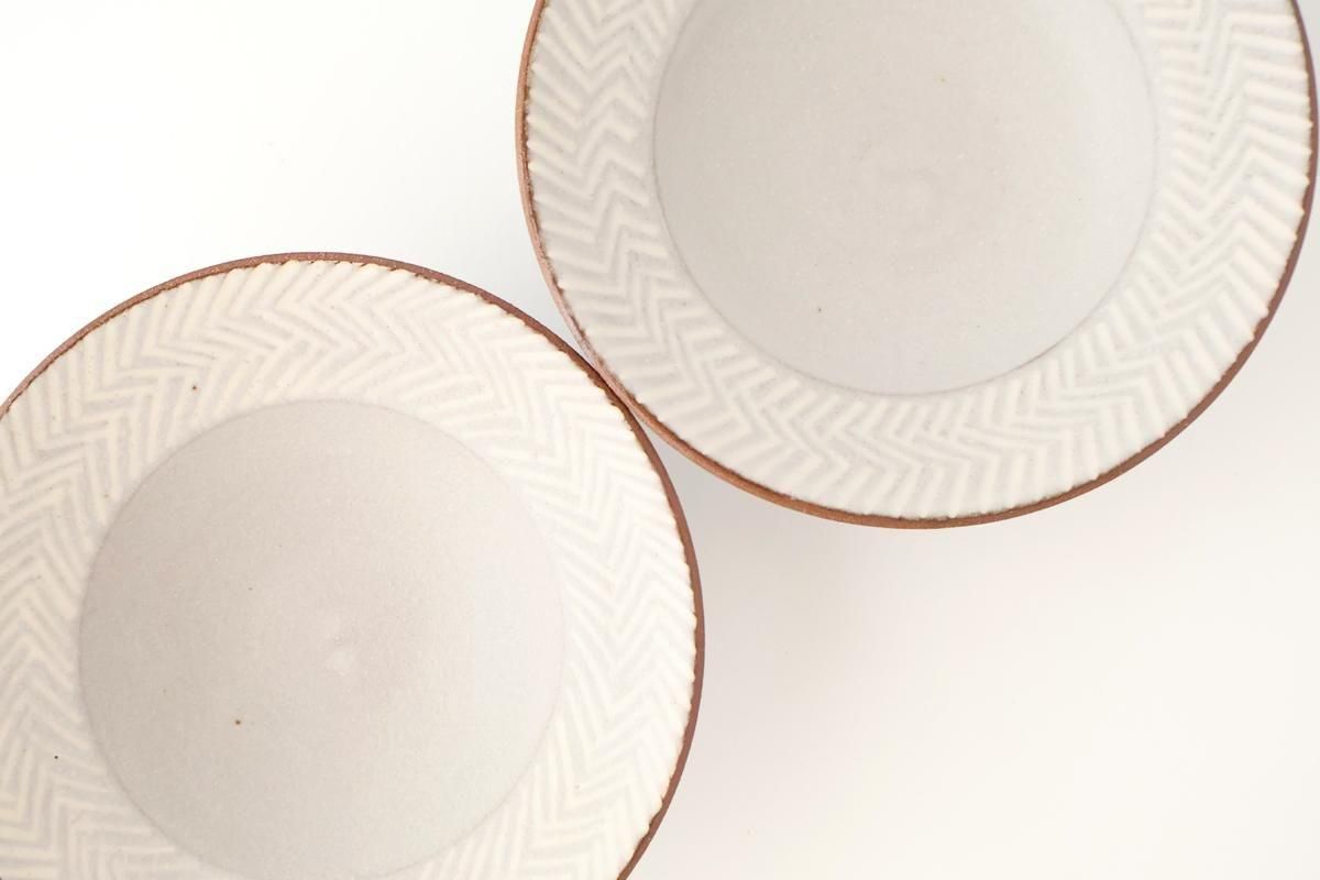 リムのヘリンボーン柄がアクセントになった、深皿です。