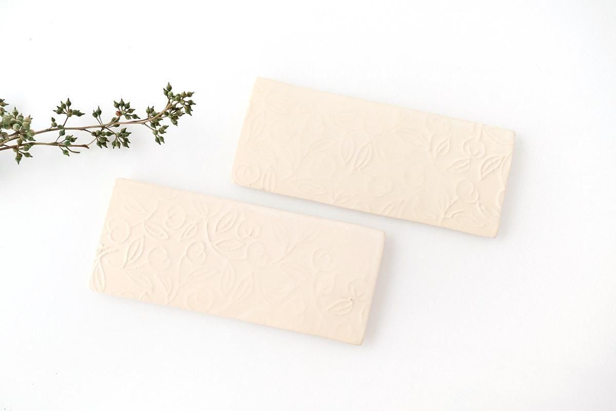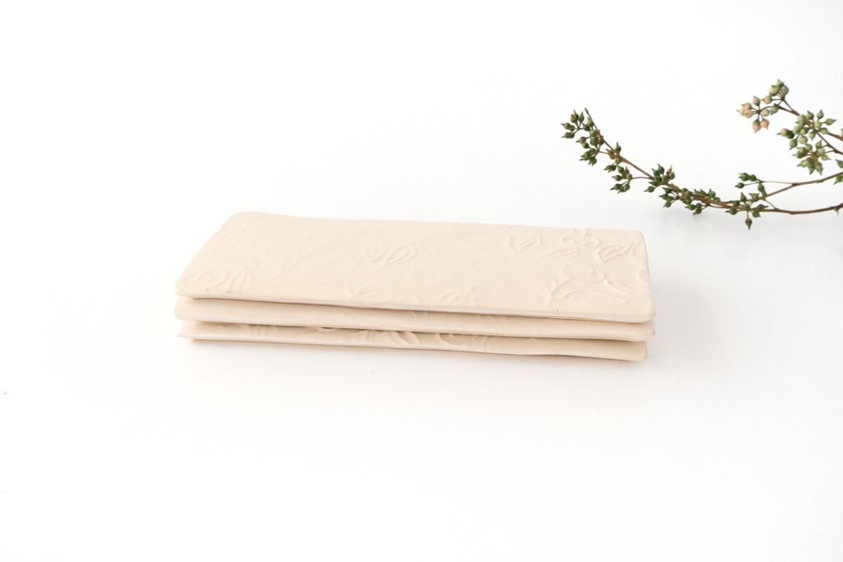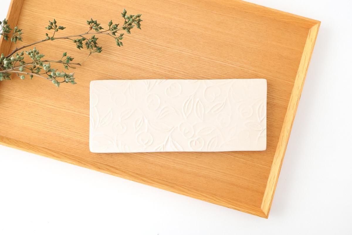 茶の実の模様が型押しされた、角皿です。