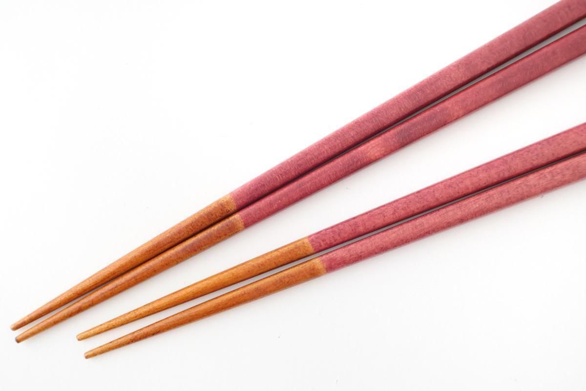 ひとつひとつ、色の出方や大きさ、形が少しずつ異なり、全く同じものがないところが手作りのお箸の魅力です。