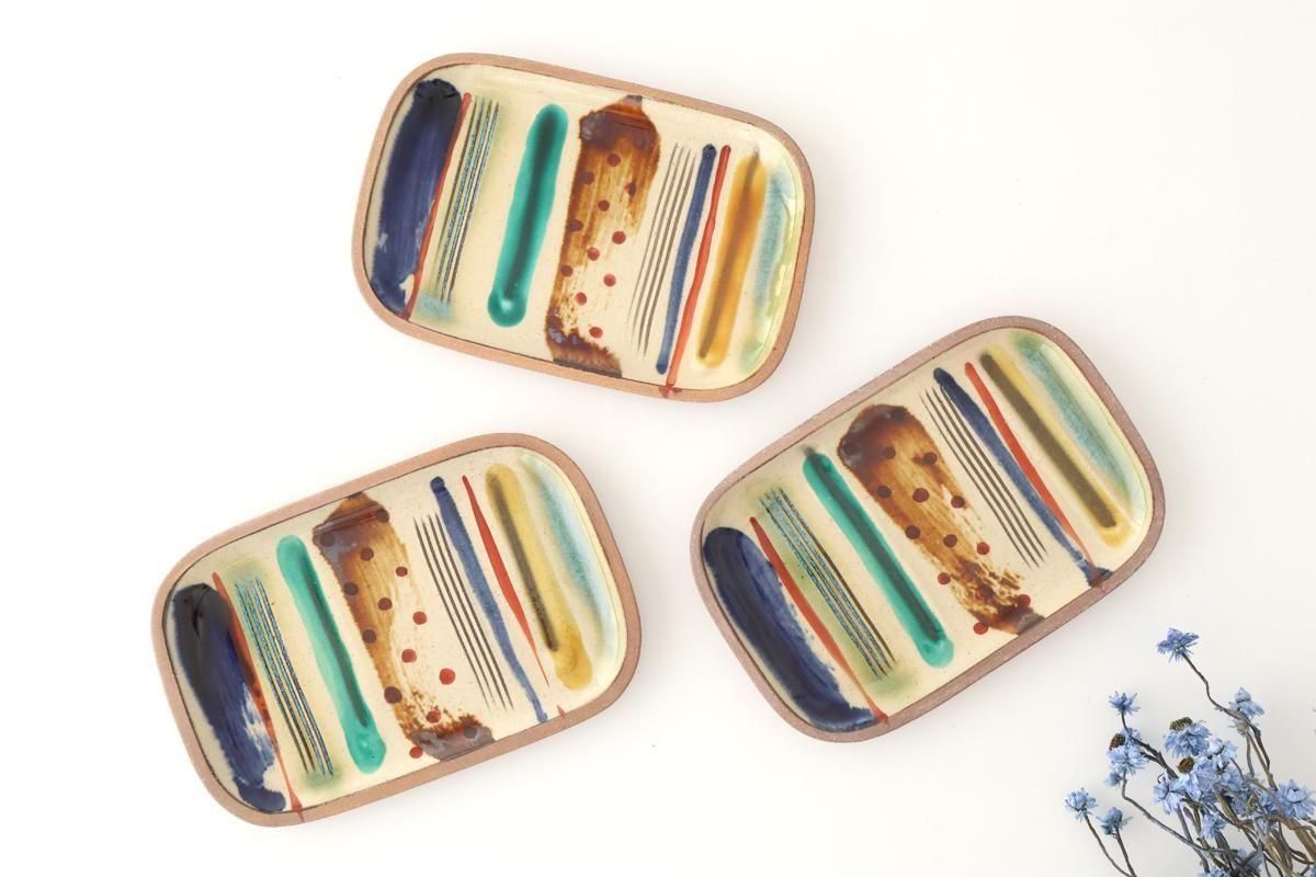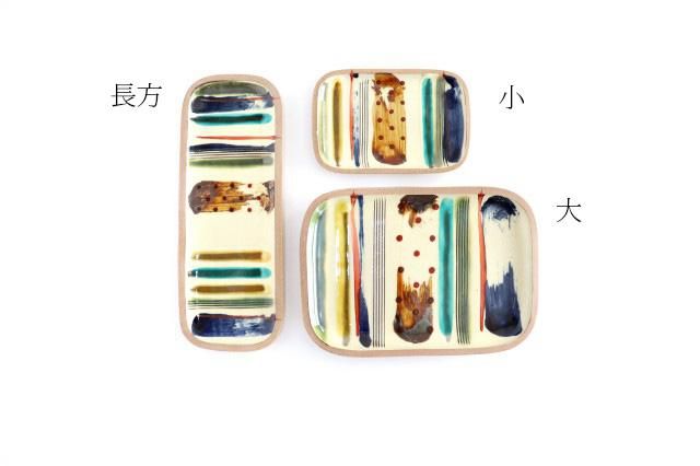 食卓を彩る、鮮やかな色使いがステキな角皿です。