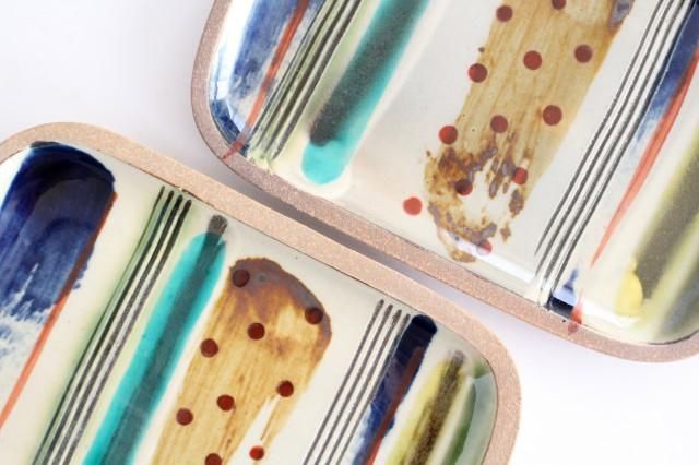 うつわをキャンバスに、大胆に自由な感性で描かれたカラフルなストライプ模様。