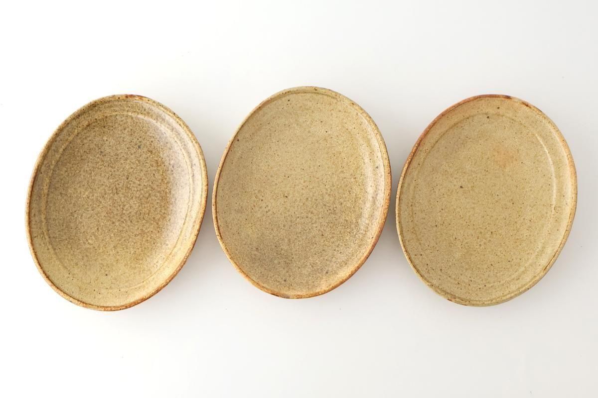 ブラウンとイエロー系のグラデーションカラーが、お月さまを思わせるようなオーバル皿です。