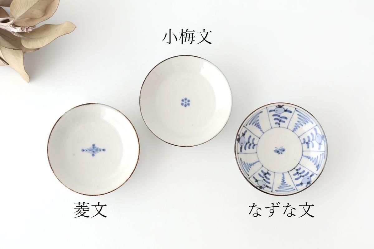 小さく描かれた梅模様が、ほっこりと心和む小皿です。
